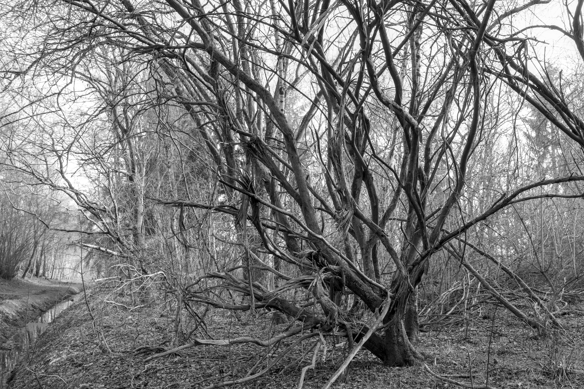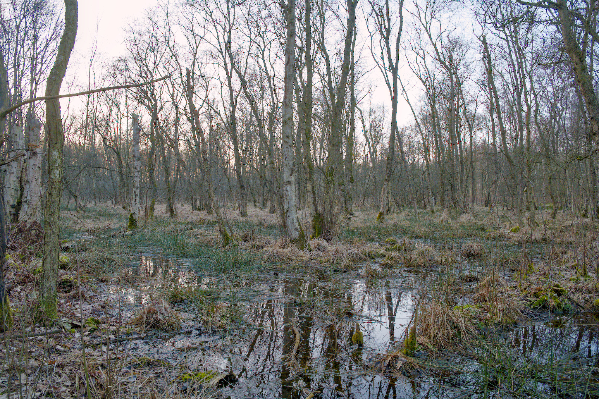 Die Birkenwälder haben sich selbst gepflanzt, dazwischen stehen Eichen und hin und wieder auch Nadelbäume. Auf alten topographischen Karten ist in der Nähe der Autobahn ein Symbol für einen „ausgezeichneten Baum“ zu finden, und tatsächlich findet man hier eine sehr alte Eiche. Leider liegt auch viel Müll in der Landschaft, dem Aussehen nach teilweise schon seit Jahrzehnten.
